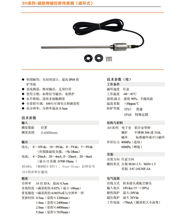 EHM系列微型磁致伸縮位移傳感器油缸位移傳感器內(nèi)置磁環(huán)式液位計