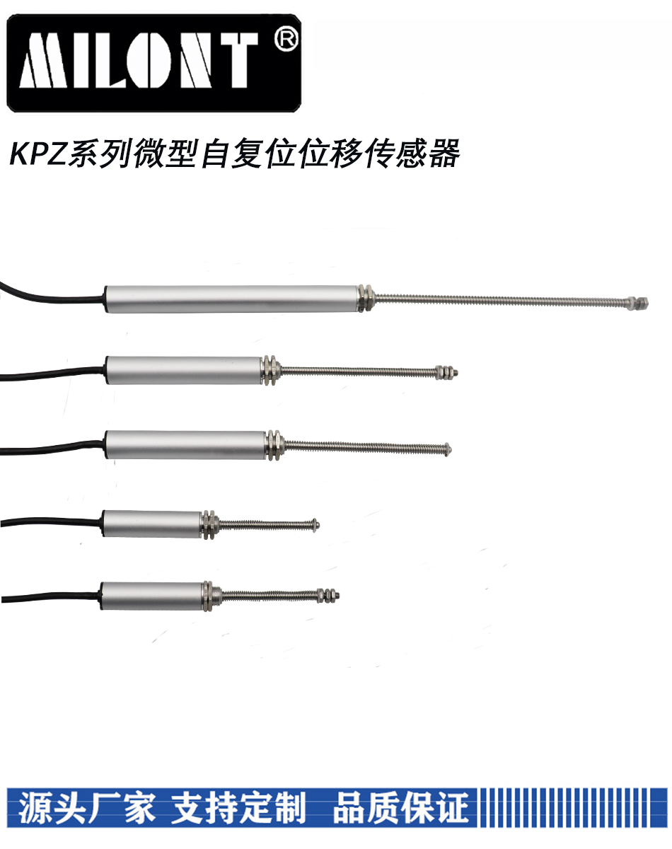 KPZ系列微型自復(fù)位式位移傳感器,量程0-100mm可選,輸出0-100%給定輸入電壓(隨位移變化而變化)。傳感器為電位計(jì)原理,另外可以外置信號變送模塊,將信號轉(zhuǎn)換為標(biāo)準(zhǔn)的0-5V,0-10V,4-20m模擬信號或者RS485數(shù)字信號。