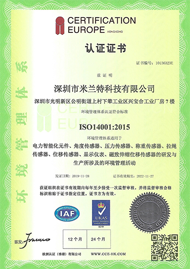 Milont ISO environmental management system certification certificate
