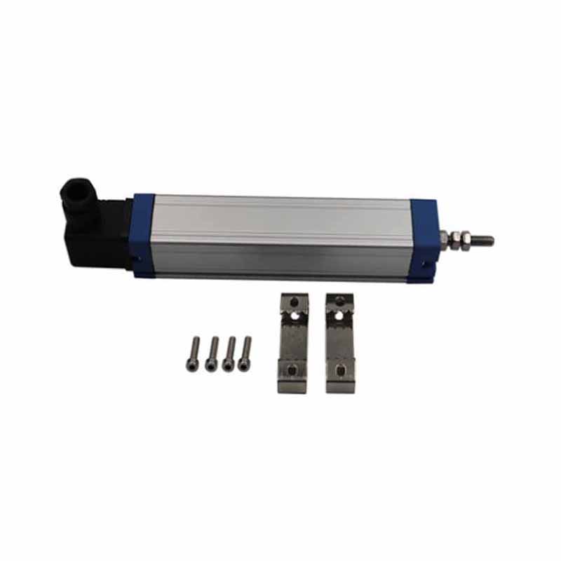 直線位移傳感器的功能在于把直線機(jī)械位移量轉(zhuǎn)換成電信號(hào)。為了達(dá)到這一效果,通常將可變電阻滑軌定置在傳感器的固定部位,通過(guò)滑片在滑軌上的位移來(lái)測(cè)量不同的阻值。傳感器滑軌連接穩(wěn)態(tài)直流電壓,允許流過(guò)微安培的小電流,滑片和始端之間的電壓,與滑片移動(dòng)的長(zhǎng)度成正比。將傳感器用作分壓器可最大限度降低對(duì)滑軌總阻值精確性的要求,因?yàn)橛蓽囟茸兓鸬淖柚底兓粫?huì)影響到測(cè)量結(jié)果。